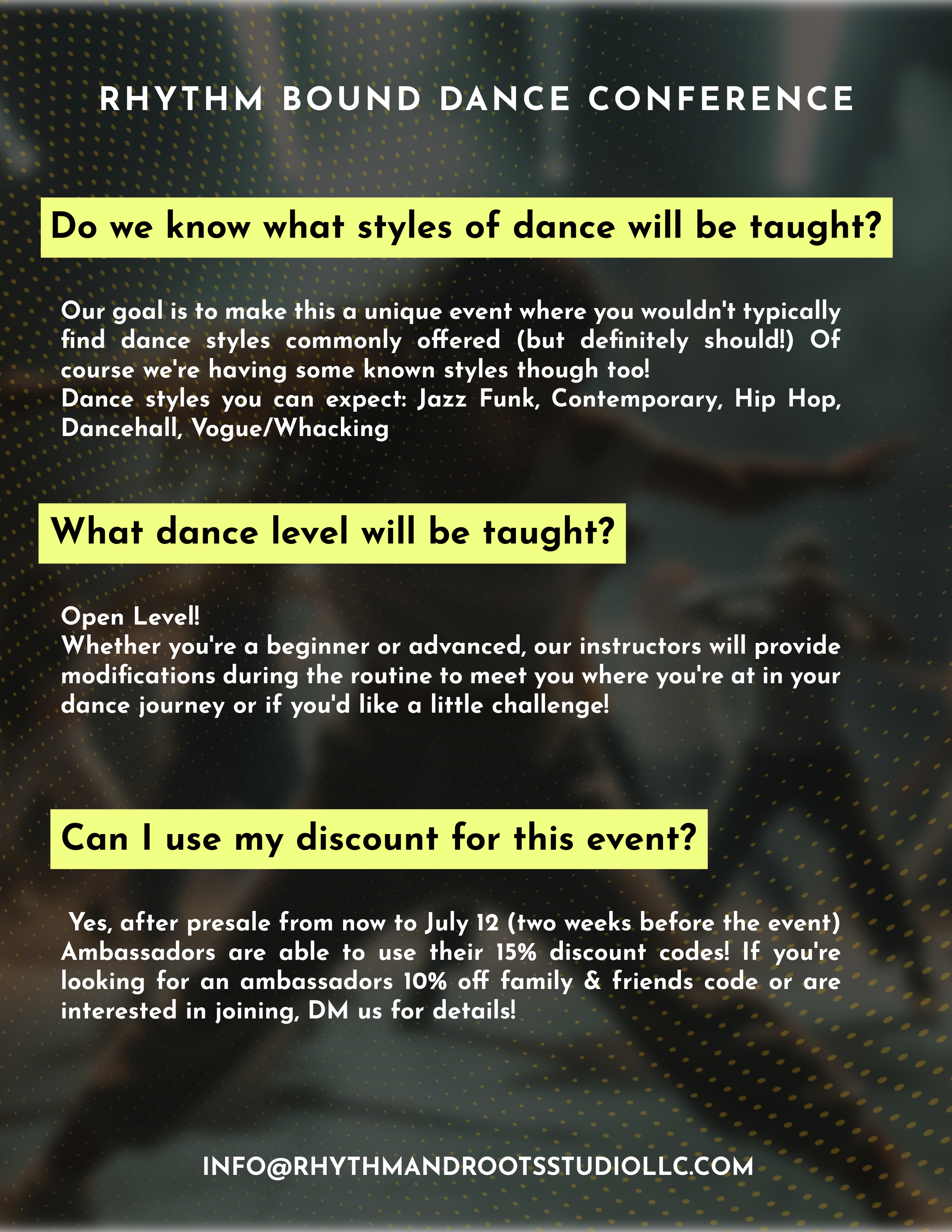 We’re creating an accessible space for people of all ages to connect, grow and create through movement, music, performance and art.